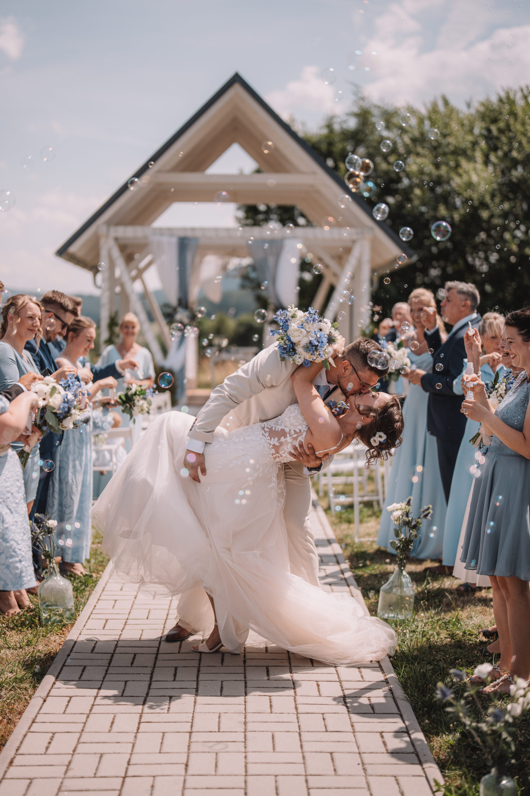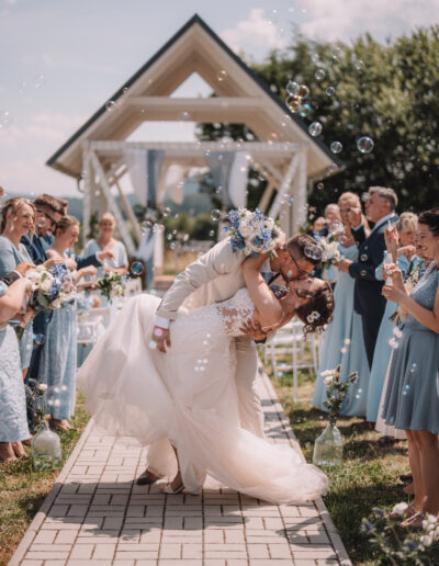 Všechno perfektně ladilo – od komunikace s dodavateli, přes dokonalou výzdobu svatebního místa, až po drobné detaily, na které bychom sami vůbec nepomysleli. Díky nim jsme si náš den užili naplno, bez stresu a s naprostou důvěrou, že všechno klapne. A taky že klaplo! Hosté byli nadšení, atmosféra byla uvolněná a my jsme mohli být jen „ženich a nevěsta“, ne organizátoři.