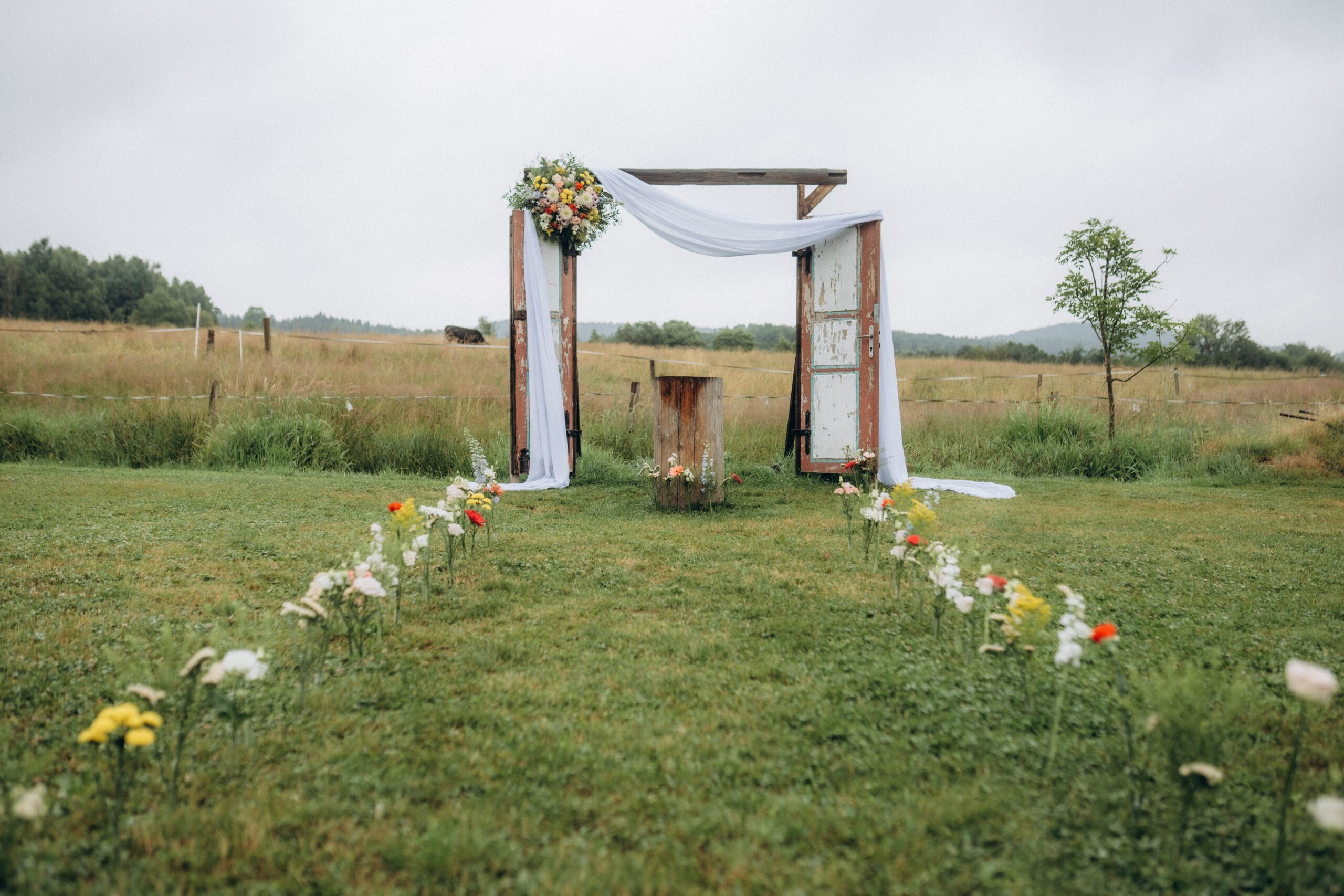 Obzvlášť oceňujeme jejich profesionalitu, klidný přístup a nejvíce si vážíme toho, jak nám připravili obřadem ve venkovních prostorách za velkého deště, bez zaváhání připravily krásnou slavobránu…..včetně deštníků pro hosty.☔️